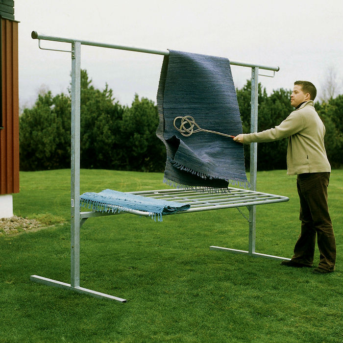 Detta stilstarka och fristående piskställ är tillverkat för att klara de tuffa förhållandena som utemiljöer bjuder på, med en fast båge klarar stället, till exempel, av tunga mattor.