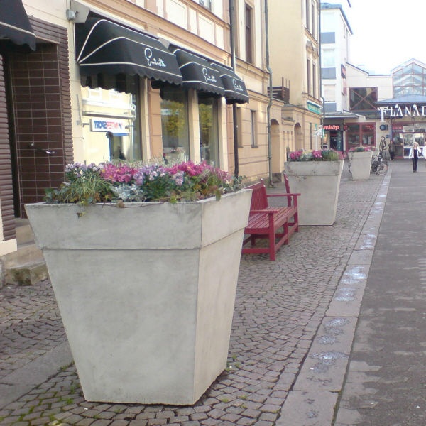 Österlen är ett rejält planteringskärl som mäter hela 1,2 m i höjd. Det passar perfekt vid pampiga entréer, på gågator, torg eller varför inte i en rondell.