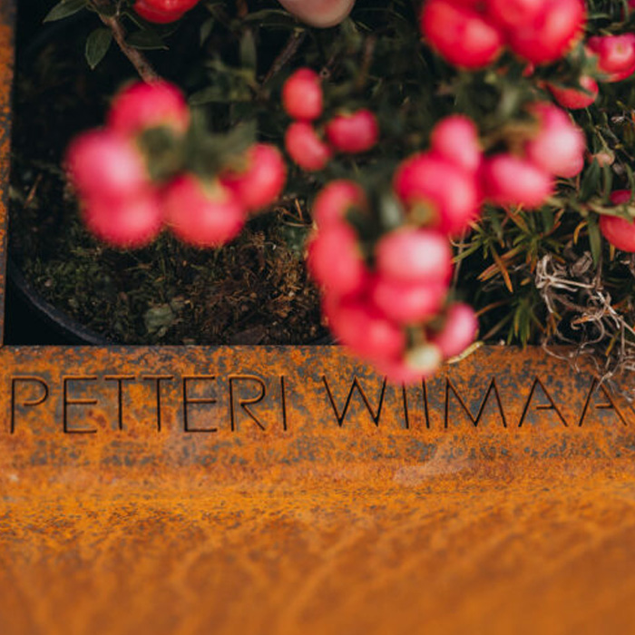 Det 3 mm corten-stålet är nästan rent kolstål, men specialbehandlad så att ytan bildar ett hållfast lager mot väderförhållande som gör att kärlet kan stå ute året om.