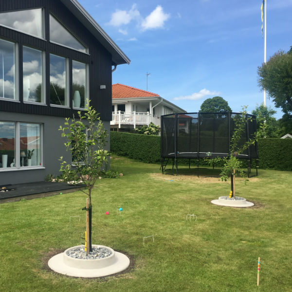 Fungerar också utmärkt som kantsten runt träd för vanliga gräsklippare. Att den är helgjuten gör det extra lätt att hålla ogräs borta, inga skarvar där det växer.