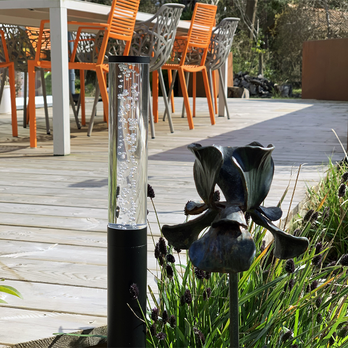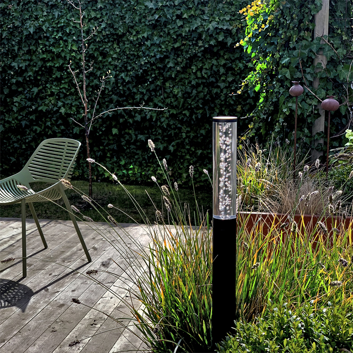 En stilren och smakfull pollare för till exempel gångar, garageuppfarter och rabatter. Pollux är mer än bara en vanlig pollare. Den är dekorativ och kan användas för att höja trädgårdar eller uteplatser. Små luftbubblor i akrylglaset reflekterar mjukt ljus och skapar ett behagligt sken i den omgivande miljön. Det går utmärkt att placera några Pollux bredvid en perennbädd eller damm för att skapa en vacker ljusinstallation i trädgården.