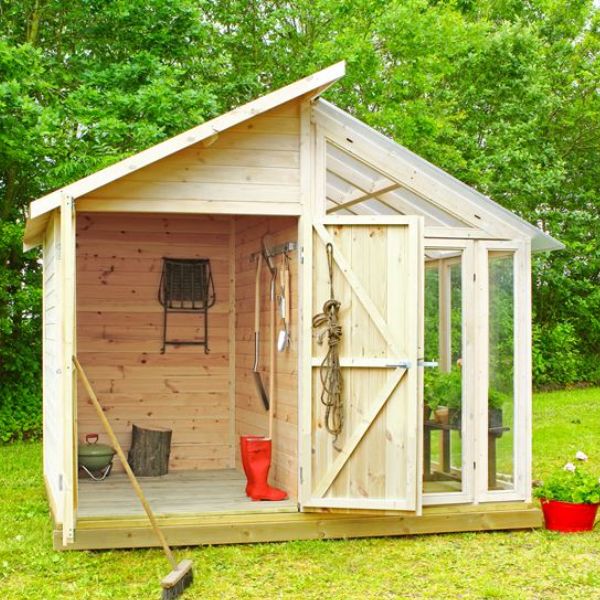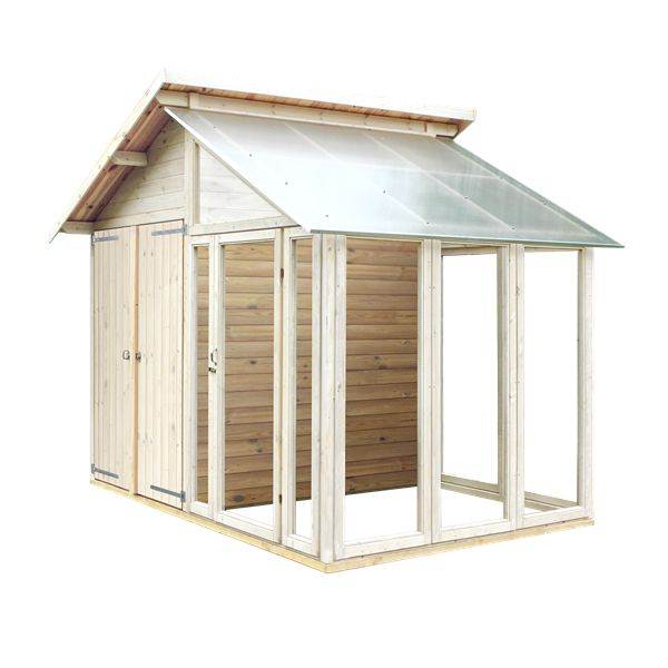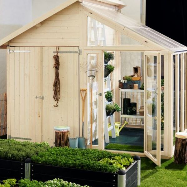 Nu har du möjlighet att kombinera drömmen om ett växthus samtidigt som du skapar förvaring i din trädgård. Detta växthus / redskapsbod har du ett rum där du kan förvara dina redskap samtidigt som du på den andra sidan kan odlar dina egna tomater, gurkor och växter.