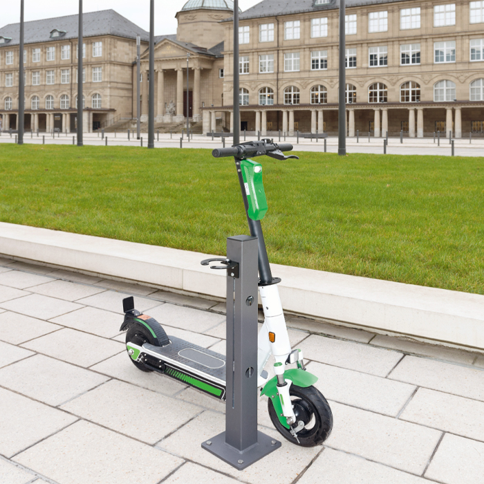 Scooter-stället monteras i marken genom att det bultas fast, tillbehör för att bulta fast ingår ej.