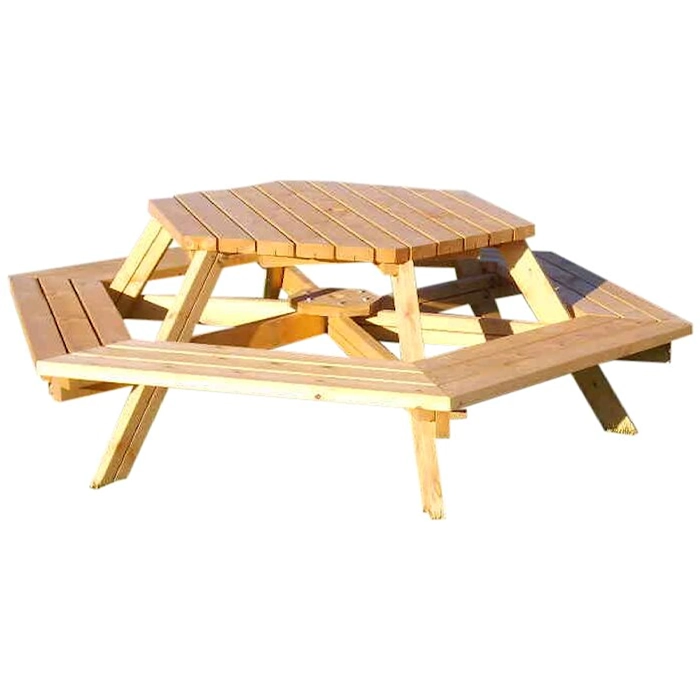 Tillverkat av högkvalitativt vacuumimpregnerat furuträ kombinerar Sexkanten hållbarhet med estetik. Bordet är designat för enkel montering, med förberedda säten och bordsskiva, vilket gör det smidigt att sätta upp och börja använda.