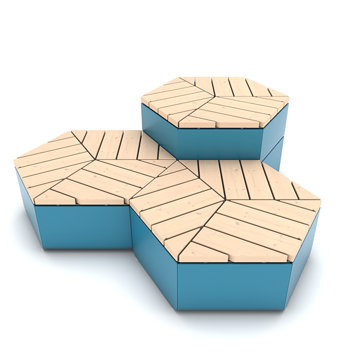 En snygg sittgrupp i olika nivåer som finns i grått och blått utförande. Sittgruppen monteras genom fastbultning.