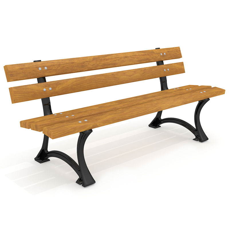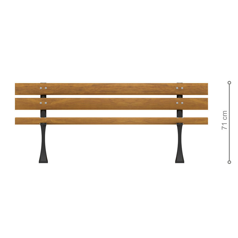 Klassisk parkbänk i robust svartlackerad gjutjärn samt med sitt- och ryggpartier i gran gör soffan nästan helt underhållsfri. Soffans sittyta är formad efter kroppen för att ge en bekvämare upplevelse.