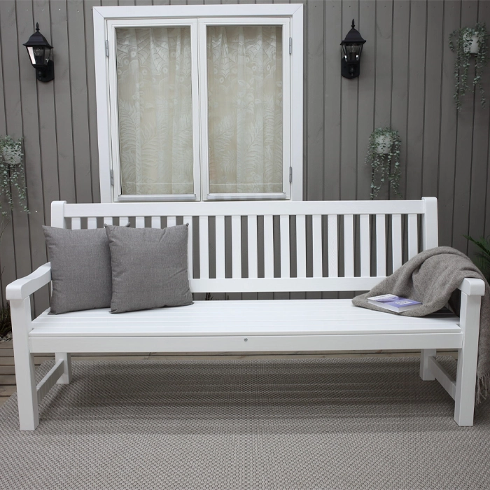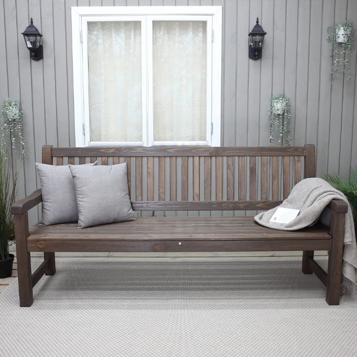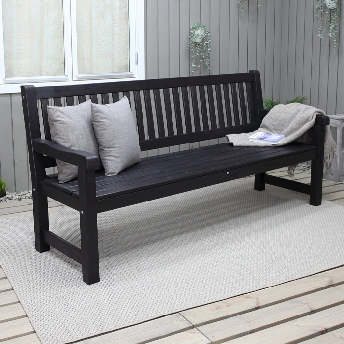 Ge din trädgård eller uteplats ett lyft med denna stilrena och stadiga trädgårdssoffa i klassisk design som finns i fyra olika färger. Med sina raka, enkla linjer och tidlösa uttryck smälter den in i de flesta utomhusmiljöer – från den lilla innergården till den stora sommarverandan. Kombinationen av gedigen konstruktion och vackert furuträ gör soffan både tålig och elegant, samtidigt som den lovar många års avkoppling i solens värme.