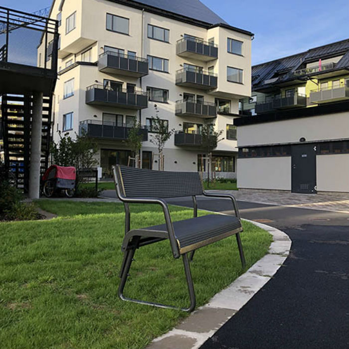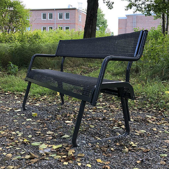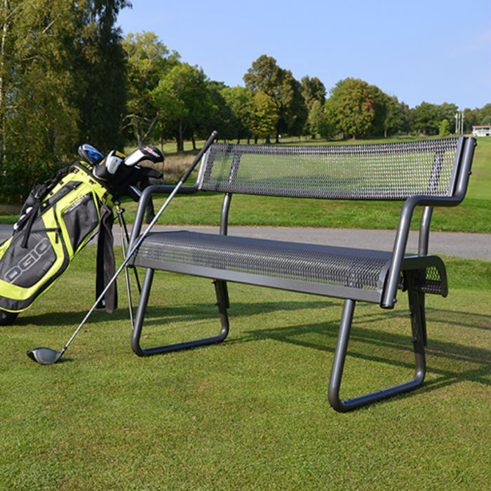 Kraftigt och hållbar soffa som med sin diskreta design smäller bra in i olika typer av miljöer. Med ett svängt ryggparti bjuder soffan in till bekväma pauser. Sitsen är tillverkad av metallnät med förstärkt plåtkant och ryggen av metallnät med rörram. Soffan är fristående med är förberädd med hål för bultning. Soffan är populär både på kyrkogårdar som på golfbanor.