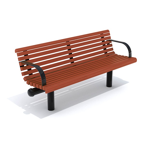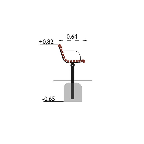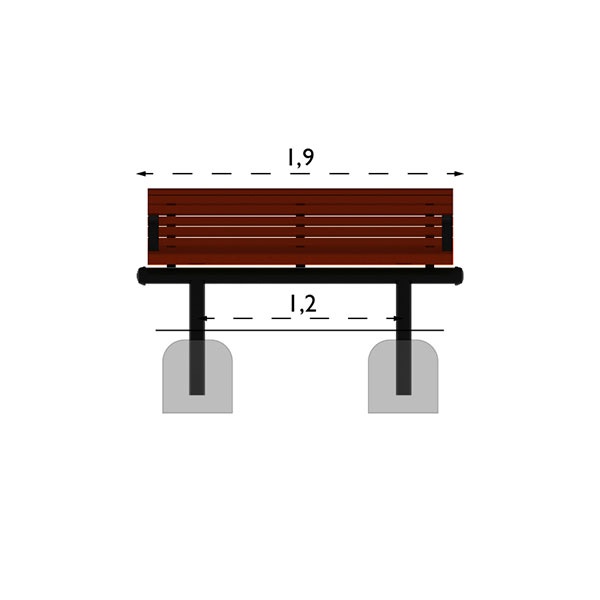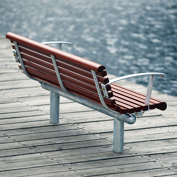 Material: Stomme av 89 mm stålrör, armstöd av plattstål 60 X 8 mm. Elförzinkade och pulverlackerade. Träskyddsbehandlad furu 45 X 45 mm, 45 X 47 mm. Ytbehandling trä: 1 X penetrerande grundlasyr och 2 X filmbildande topplasyr.