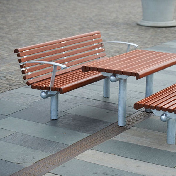 Soffan City-Form ingår i en designserie för möblering av gatans rum där det ställs höga krav på design och funktion. Soffan har en rejäl konstruktion som tål tuffa tag i den offentliga miljön.
