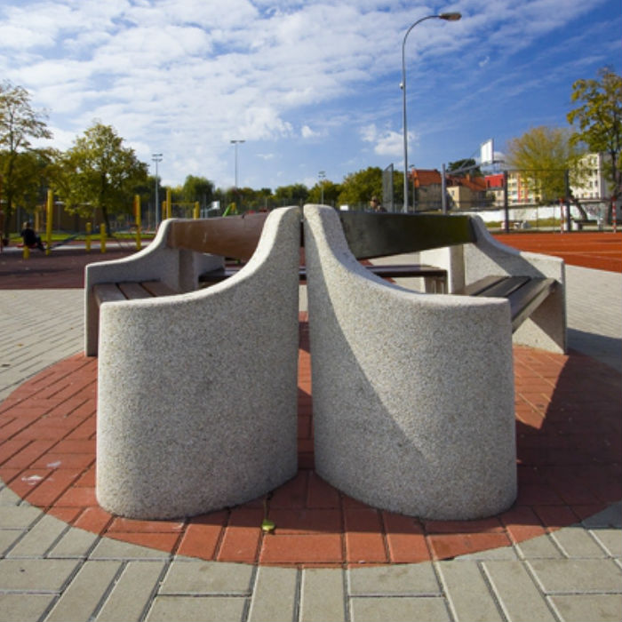 Betongsoffa med sitt- & ryggyta tillverkat i gran, smälter snyggt in i stadsmiljöer men även i grönområden. Med betongstommen står soffan stadigt och kan även användas som avspärrning på t.ex. torg och gågator. Med en sitthöjd på 43 cm och sittbredd på 40 cm ger soffan en hög komfort.