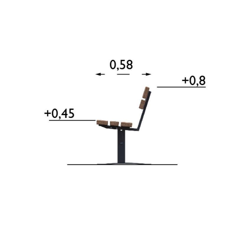 Både den återvunna plasten och stålstativ har kraftiga dimensioner som tål tuffa tag i den offentliga miljön. Denna serie innefattar även bänk, och bord i samma tilltalande formspråk. Passar bra in park och stadsmiljöer och är även ahndikappanpassad..