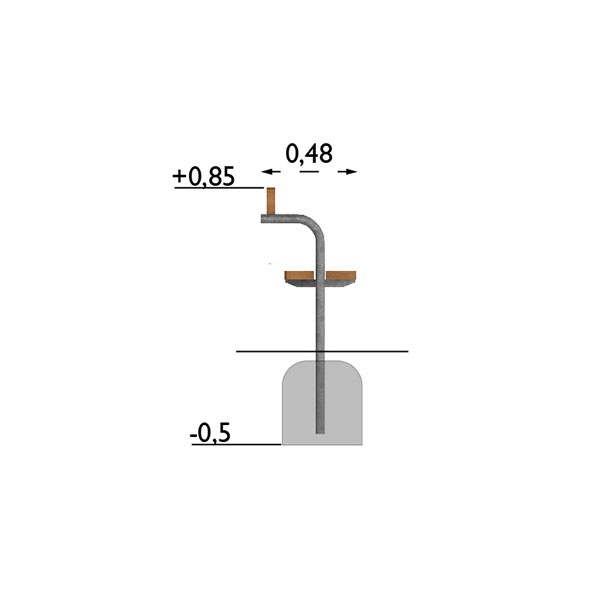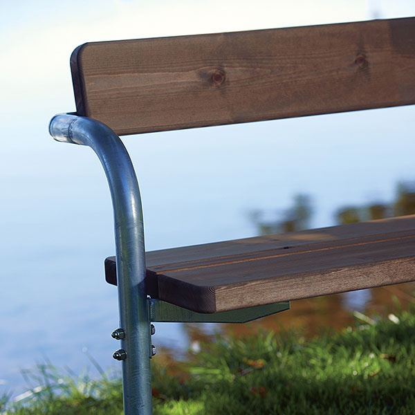 Material: Tillverkad av 48 mm elförzinkade och pulverlackerade stålrör. Virket av 45 x 45 och 45 X 165 och 190 mm furu, träskydsbehandlat. Ytbehandlingen består av 1 X penetrerande grundlasyr och 2 X filmbildande topplasyr. Total filmtjocklek är 70 µm vilket borgar för en lång livslängd.