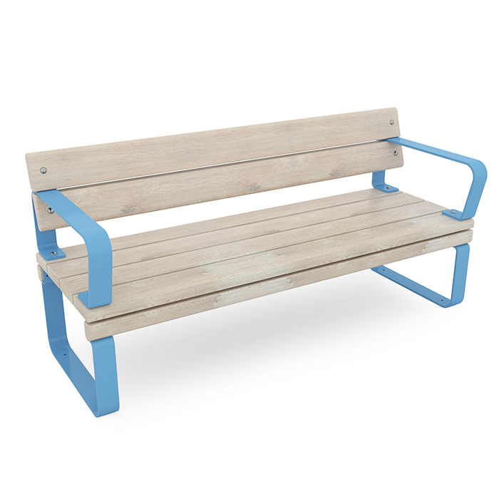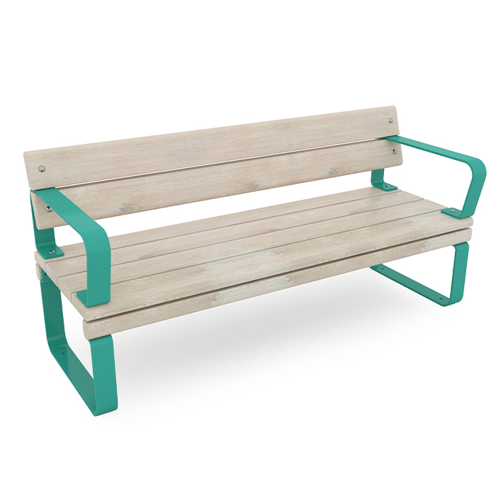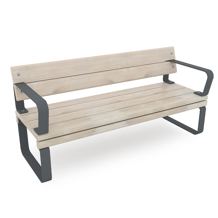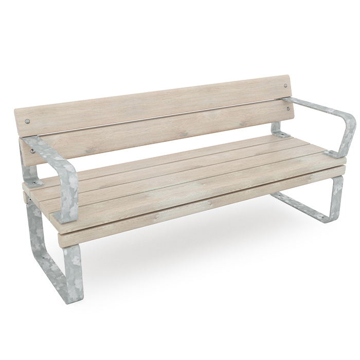 Fristående bänk i serien Rosenlund tillverkad i robust stål och svenskt furu, framtagen för att hålla i flera decennier, underredet finns att få i 5 olika utförande för att kunna passa in i fler miljöer. Den breda bänken ger plats för tre personer samtidigt och är utrustad med armstöd som är placerade 705 mm ovan mark för att underlätta när man ska resa sig från soffan.
