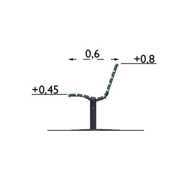 Material: Stomme av förzinkade och pulverlackerade stål. Sits av träskyddsbehandlad och laserad furu.