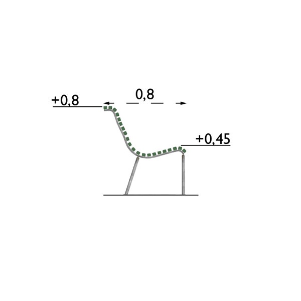 Material: Varmförzinkad stomme av profilstål 50x15 mm och rör 25x2 mm. Ribborna av 33x28 mm, träskyddsbehandlad furu som är laserat 3 gånger.