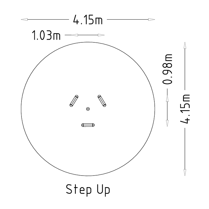 Step Up tränar lår, hamstrings och sätesmuskler genom upp- och nedklivning. Tre stegstänger i olika höjder passar olika konditionsnivåer. Utrustningen är prisvärd, kräver minimalt underhåll och passar perfekt i utomhusgym.