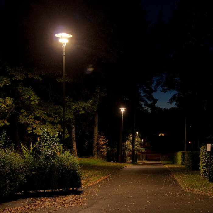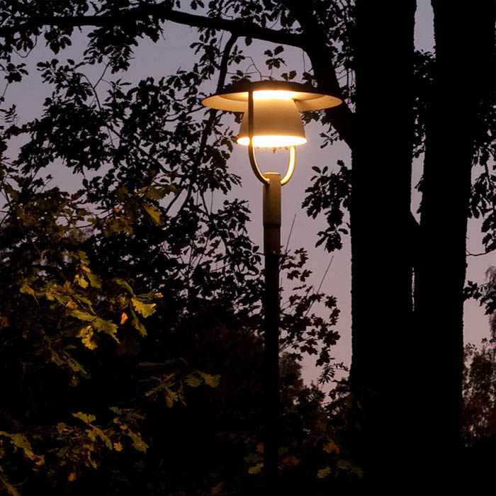 Skogslyckan är en stolparmatur med avbländat nedljus, kromaterad och pulverlackerad stomme som är bestyckad med en utbytbar LED-enhet. För stolptopp 60mm, med kabelavlastning och snabbkopplingsplint 3x2x2,5kv.