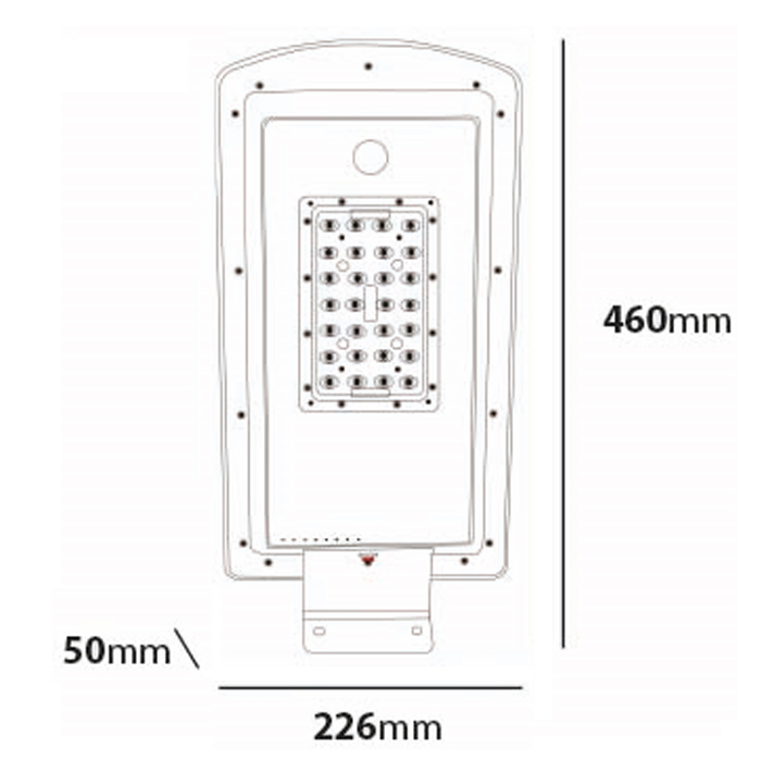 Belysningsarmatur i pulverlackerad stål som enbart drivs av solceller, finns i 10 respektive 25 Watt. Armaturen tänder upp vid mörker och har ett grundljus på 20% fram till det att PIR-sensorn reagerar på rörelse och då går upp till 100% ljusstyrka. Armaturen kan fästas både på vägg och på stolpar med en diameter på 60 mm i diameter och monteras då med medföljande stolpklämma,