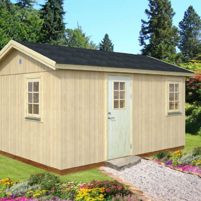 Stugan levereras som en byggsats och kunden sätter ihop huset på plats med med hjälp av medföljande monteringsanvisning (finns som nedlanningsmaterial). I paketet ingår allt trä, planhyvlade väggprofiler, råspont till golv och tak, men också dörrar, fönster, lås, handtag, skruv och spik.