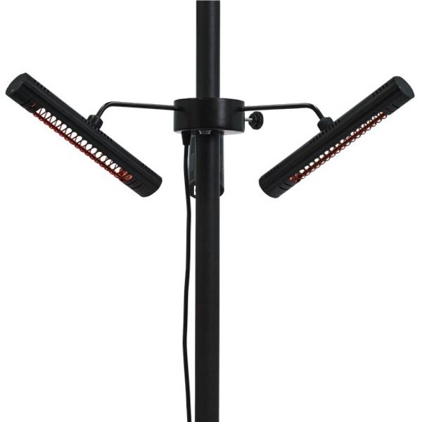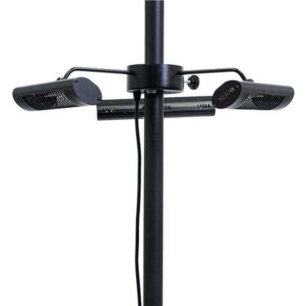 Terrassvärmare Heat 1 ECO High-line 3 x 670 W är en stilren, miljövänlig och elegant värmekälla med tre värmelampor på 670 W vardera. Utformningen är designad för montage under parasoll och lämpar sig således för caféer, restauranger eller för privat bruk. ECO high-line-serien är designad för professionell användning samt för den kvalitetsmedvetna konsumenten som uppskattar en elegant och snygg design i kombination med hög prestanda.