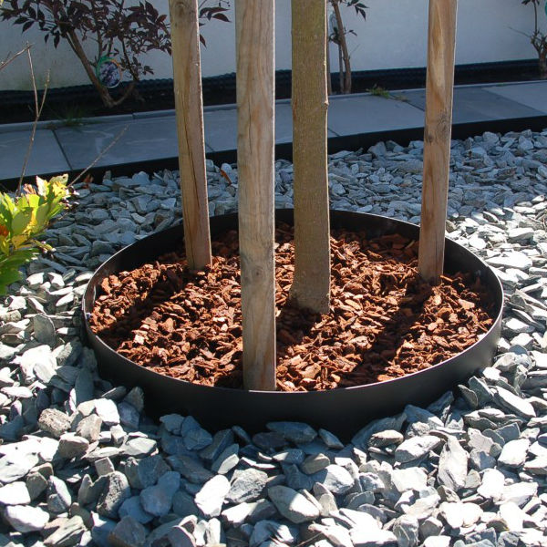 Med en trädring får du en tydlig avgränsning kring träd och buskar vilket gör en stor skillnad på helhets intrycket i din trädgård. Trädringen förhindrar även inväxning av gräs mot stammen och förenklar gräsklippning och underhåll. Trädringen består av 2 st rundvalsade plåtar som skruvas ihop. Således kan man sätta trädringen kring befintliga träd och buskar. Trädringen är 10 cm hög, har en diameter på 60 cm och är 2 mm tjocka.