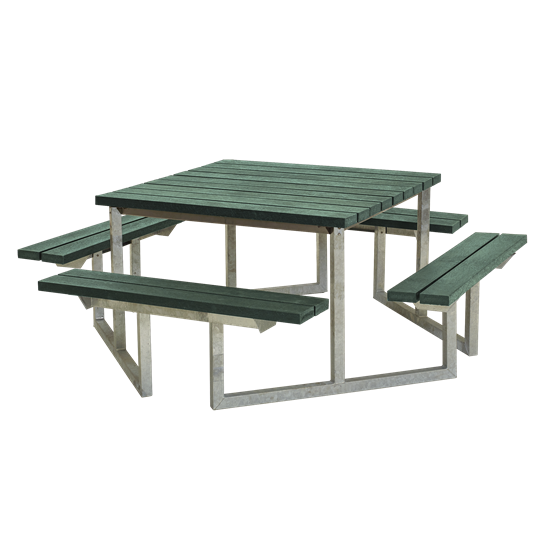 Twist Picknickbord är i stort sett helt underhållsfritt. Underredet är tillverkat varmgalvaniserat stål med brädor av ReTex vilket är en blandning av 100 % återvunnen textil / plast.