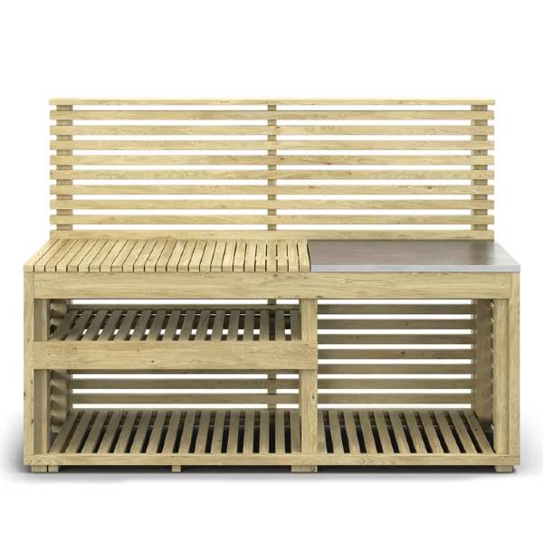 Utekök Horizont är ett prisvärt alternativ där du snabbt kan få ett riktigt fint utekök på plats. Uteköket är tillverkat i tryckimpregnerad gran försedd en med rostfri bänk och karaktäristiska ribbor. Med Horizont skapar du en trevlig plats för matlagning utomhus eller varför inte som en ett rymligt planteringsbord.