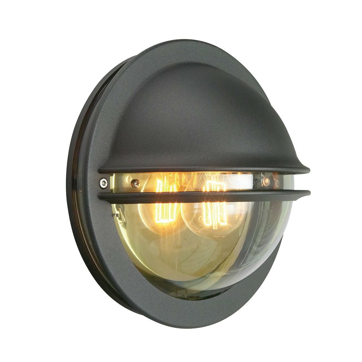 Väggbelysningen Berlin är en modern, oval och stilig ljuskälla, tillverkad i gjuten aluminium med en avskärmad, klar eller frostad polykarbonatkupa, passar denna väggbelysning in i flera olika typer av utomhusmiljöer. Ljusöppning på undersidan armaturen ger en fin effekt på väggen.