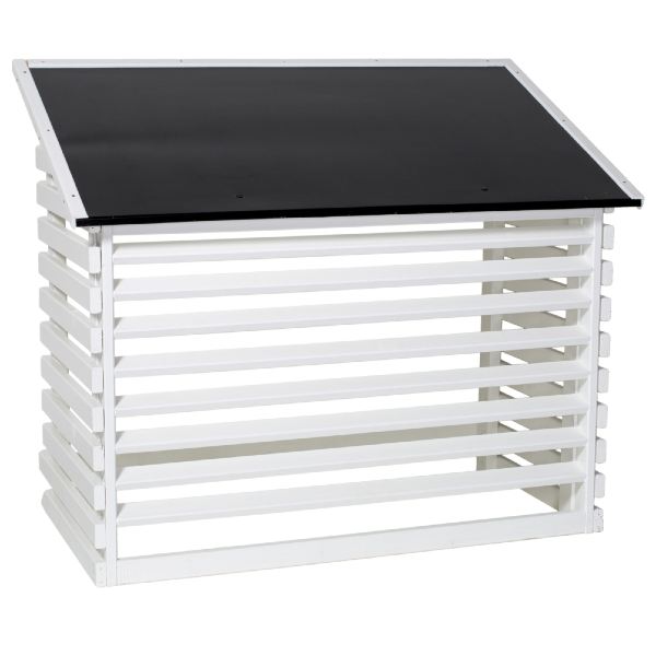 Vårt värmepumpsskydd Horizont ger både skydd och stil till din värmepump. Med en grundmålad finish och ett elegant plåttak erbjuder det både funktion och estetik. Skyddet passar perfekt för både sommarstugan och den moderna villan.