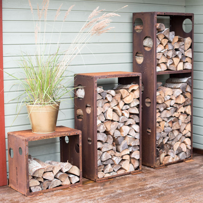 WoodStock är avsedda för förvaring av ved, hyllan kan även användas för att separera trädgårds- eller terrassytor eftersom att dem kan monteras ihop. Tillverkade i cortenstål som har tillverkats i Finland.