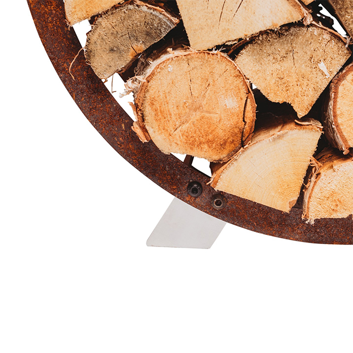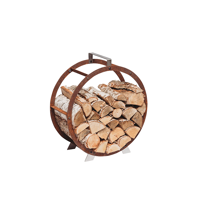 Vedkorgen Hugo passar både för inomhus och på altanen, korgen är i producerad 3 mm cortenstål och rostfritt stål och är väderbeständig för det det nordiska klimatet.