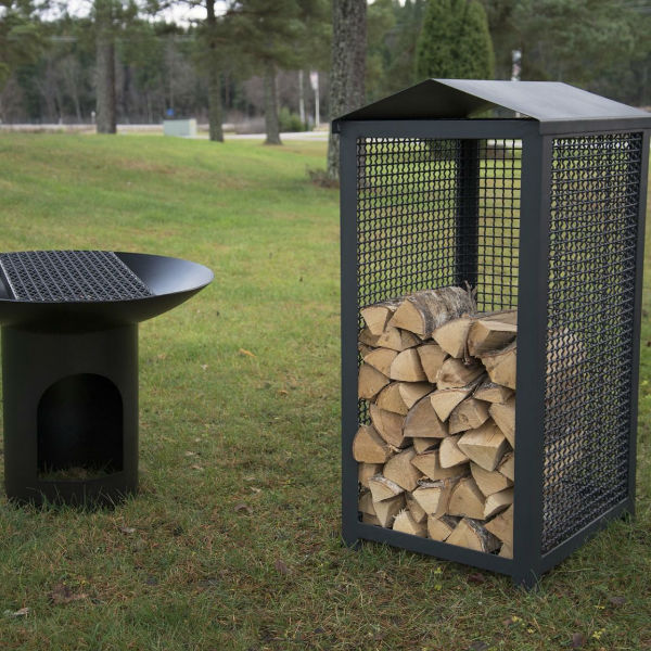 Förse grillplatsen med ett vedställ och se till att det alltid finns torr ved inför grillningen. Här kan vedträn förvaras i anslutning till grillplatsen. Vedstället är i pulverlackerat stål och tål tuffa tag i den offentliga miljön.