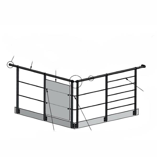 - Som tillval kan man även fylla räcket med plexiglas, till detta behöver man fyllningsfäste, samt fyllning i polykarbonat. Alternativt kan man använda en extra rörsats.