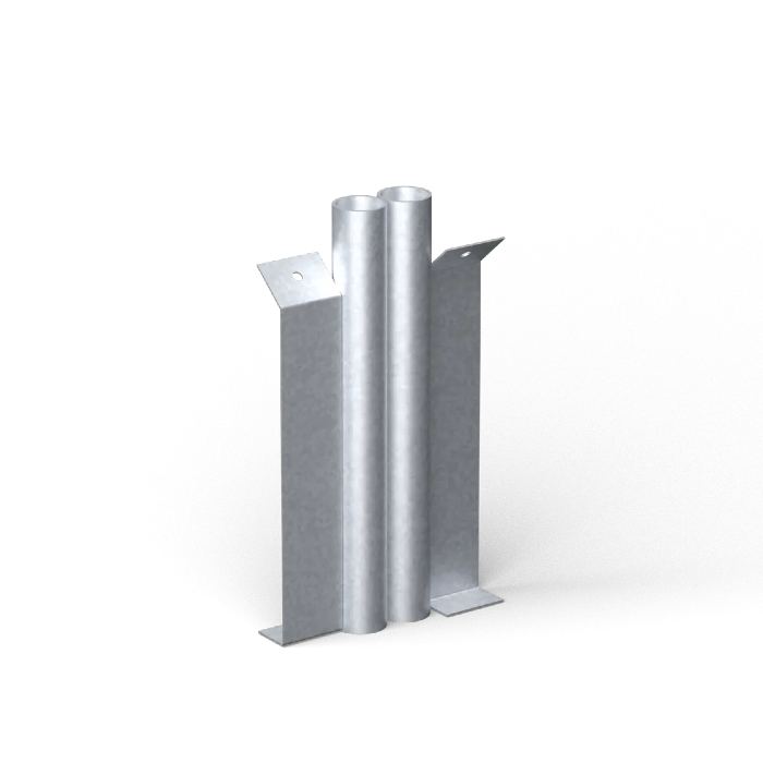Fundamentet finns tillgängligt som enkel- och dubbel och är anpassat för rör med Ø48 mm. Förutom att installationen blir betydligt förenklad ger möjligheten att byta skadade räcken utan problem.