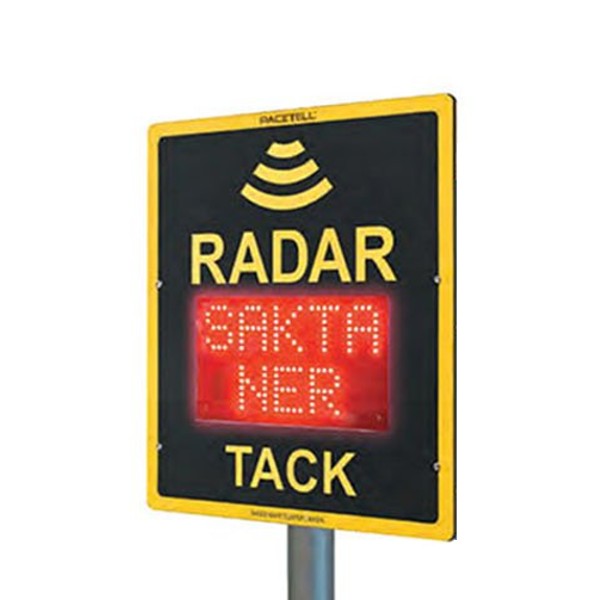 När bilisten kör över den satta hastigheten blinkar texten SAKTA NER med röda tydliga ledlampor.