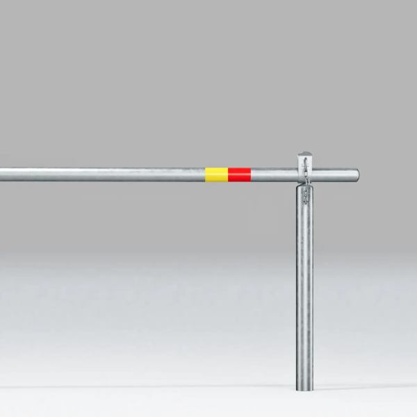 Denna lösning kommer med en mottagarstolpe och ett teleskoperat bomrör som enkelt kan låsas med ett hänglås (ingår ej). Den manuella öppningen och reflexerna i röd och gul färg säkerställer både säkerhet och synlighet!