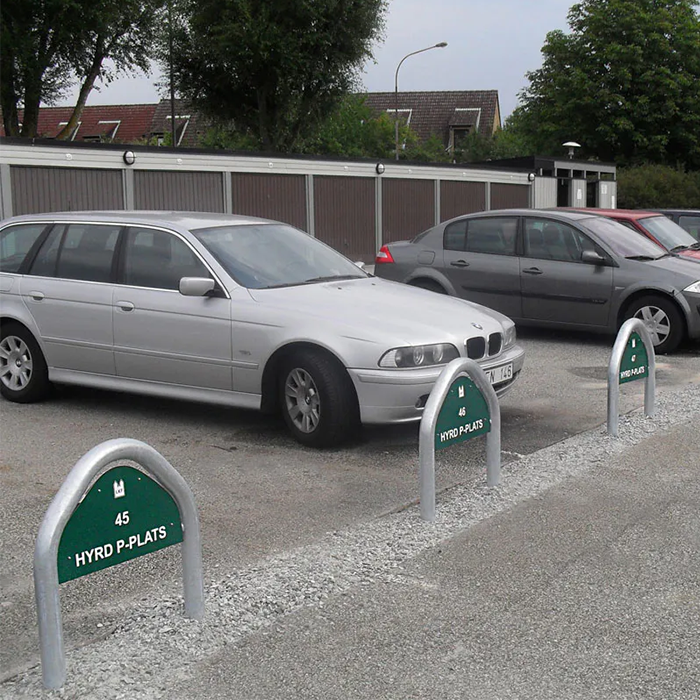 Dessutom inkluderar varje påkörningsskydd en skylt, vilket gör så det blir ett extra element för att skapa en trygg och välorganiserad parkeringsmiljö.