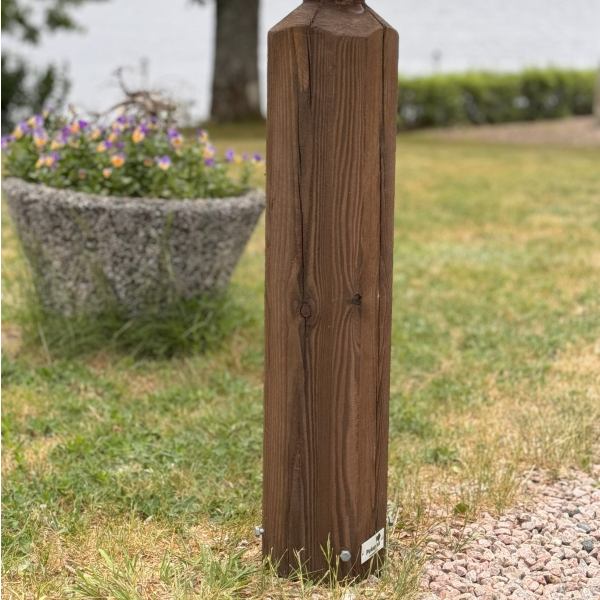 Pollaren är tillverkad i furu och finns i färgerna nötbrun samt svart.