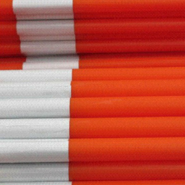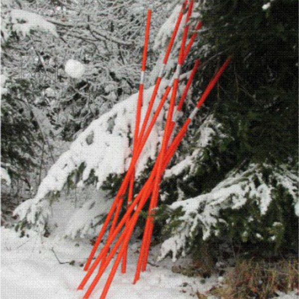 Snökäppar tillverkade av stabil, orange PP-plast (polypropen). Längden är 2 meter och diametern är 26 mm.