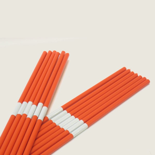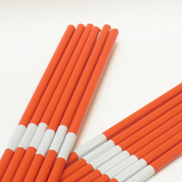 Snökäppar tillverkade av stabil, orange PP-plast (polypropen). Längden är 2 meter och diametern är 26 mm.