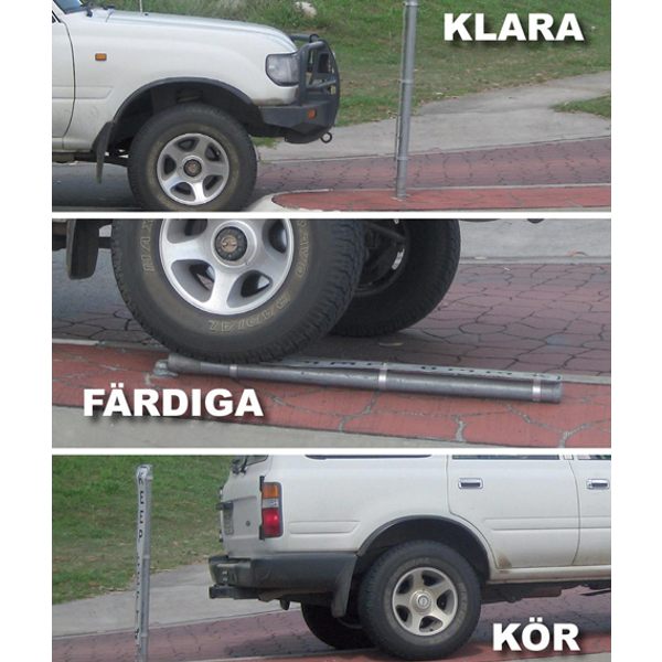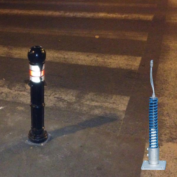 Fördelen med detta fäste är att det viker sig vid en påkörning för att sedan resa sig upp igen.