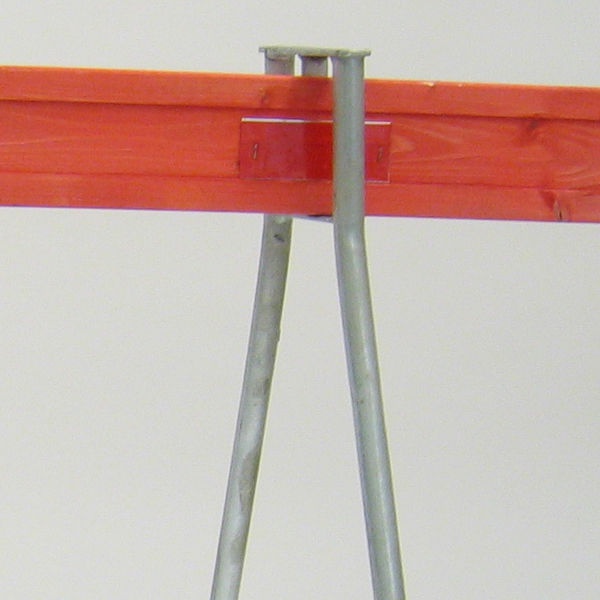 Traditionell vägbock för en bräda. Vägbocken är tillverkad av varmgalvaniserat stål.