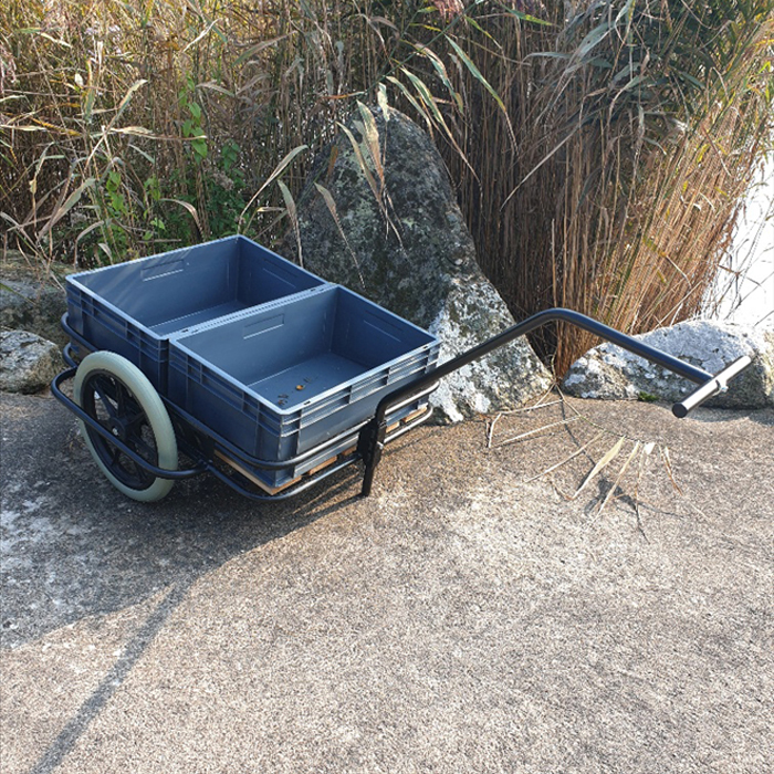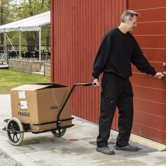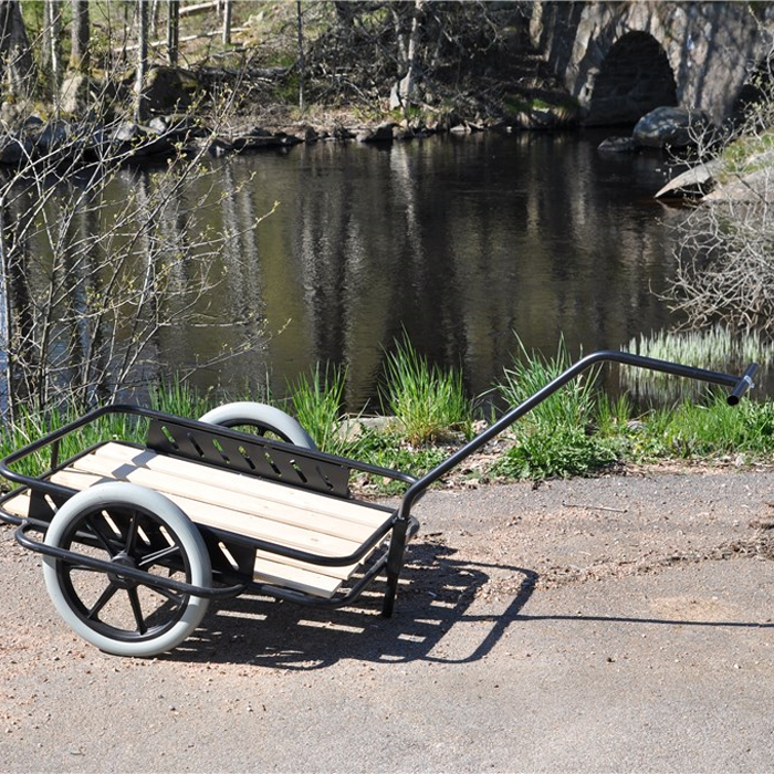 Dragkärra med pulverlackad ram gjord av stål med träflak med invändig storlek på 820x650 mm, perfekt både för industrier som i hemmet. Kärran levereras med två punkteringsfria hjul med en diameter på 400 mm. Dragkärran har en maxbelastning 150 kg.