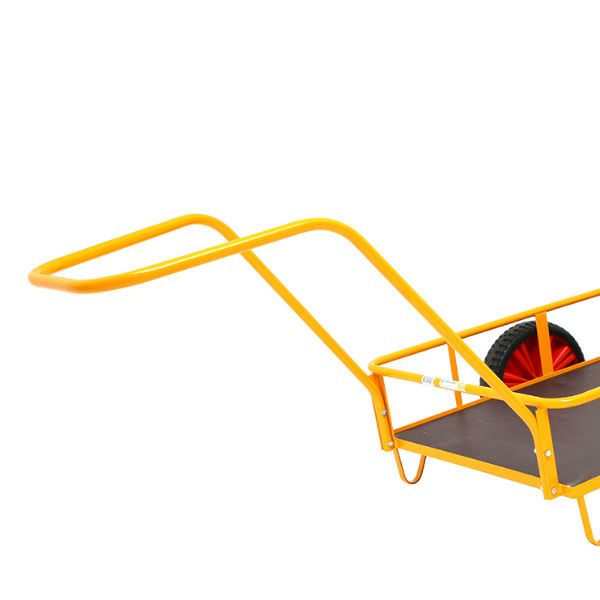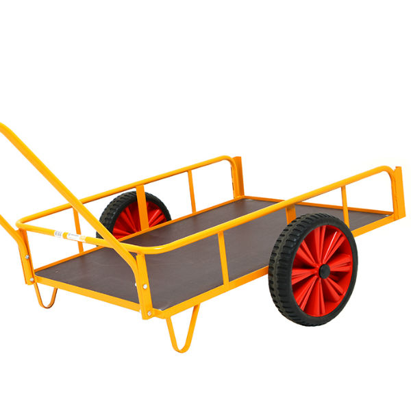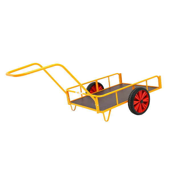 Hörby bruk Paketkärra har en robust och kraftig konstruktion och lämpar sig för transport av tyngre gods. Flaket är tillverkat av filmbelagd plywood av korsvis limmade björkfaner, exteriörlimmad. Kanterna är förseglade med utomhusbeständig brun färg. Räcket är tillverkat av stålrör på tre sidor.