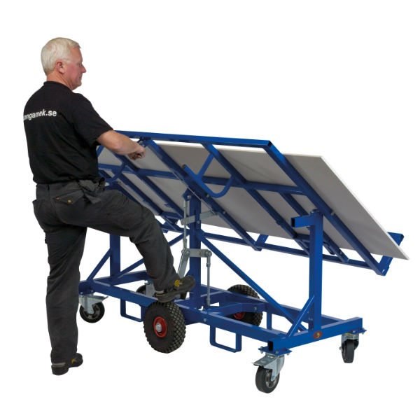 Skivvagen har en maxbelastning på 500 kg och en arbetshöjd på 900mm.