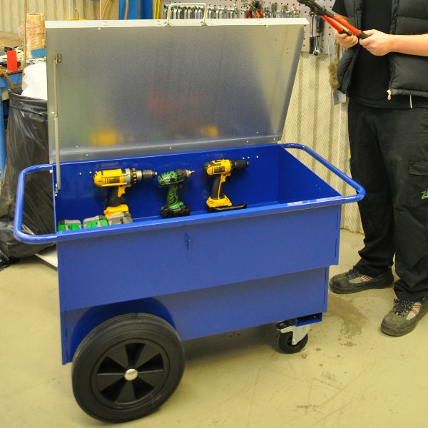 Verktygsvagn av pulverlackerad 1,5 mm stålplåt med en volym på 300L.