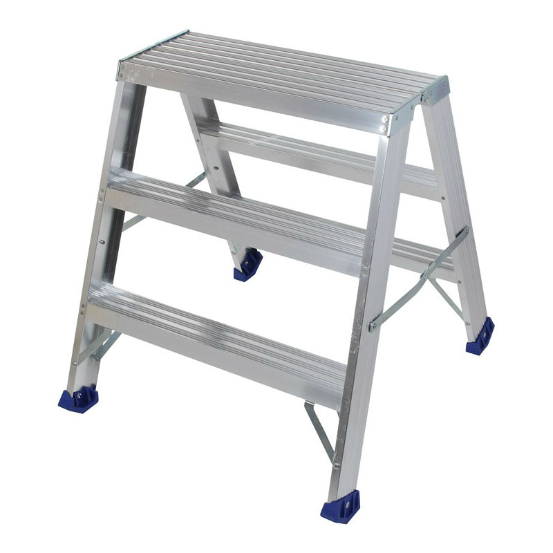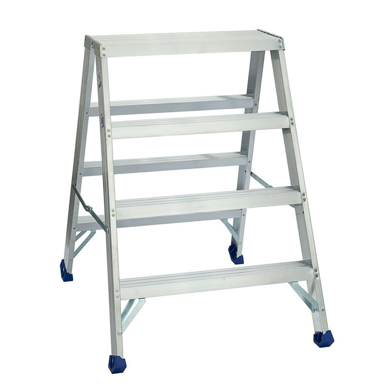 Arbetsbock med en väl tilltagen plattform samt hydraulnitade steg vilket ger en bra stabilitet på bocken, finns i 2 till 5 steg. Varje ben har ett glid- och golvskydd monterat vilket gör att bocken står stabilt på underlaget, varje ben är dessutom förstärkt med stag mellan vangstycke och steg. Denna förstärkning ger en ökad livslängd på bocken.