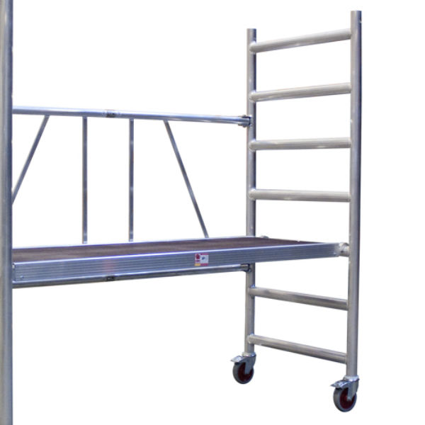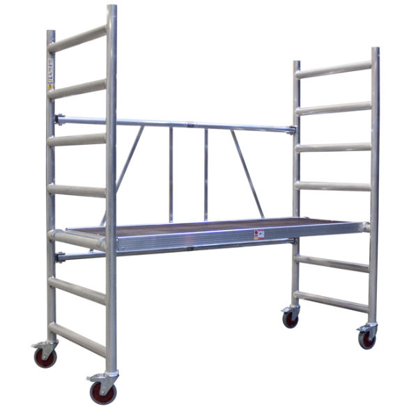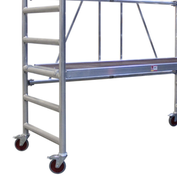 Rördimention är 50x2 mm och ställning levereras med 4 st kraftiga låsbara hjul Ø 12,5 cm. Plattformen är rejäl med måtten 1,78x0,6 m.