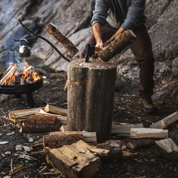 Klyvyxa för klyvning av mellanstora stockar, skaft tillverkat av Hickory för en genuin träkänsla.